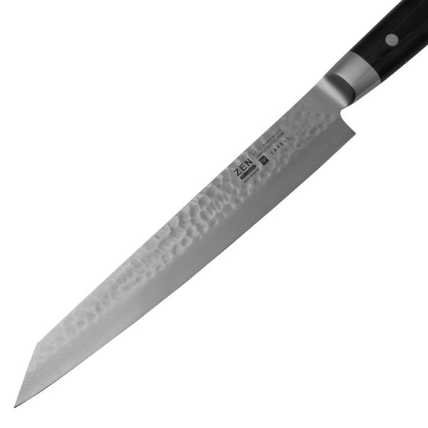 Zen серијата има јадро од VG10 stainless челик и супериорна тврдост од HRC61 на Rockwell скалата. Ножевите од оваа серија имаат 37 слоја со едноставна дамаск железна текстура:Односно од по 18 слоја од секоја страна на јадрото.Финиширан е со вдлабнатини на горниот дел од двете страни направени со удирање на сечилото и го има одштампано името на серијата на Јапонски.