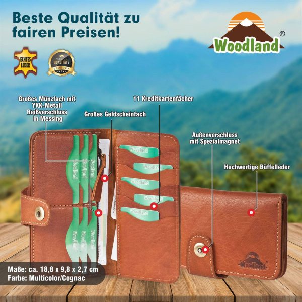 Машки / женски кожен паричник со повеќе места за картици, боја кафена-коњак